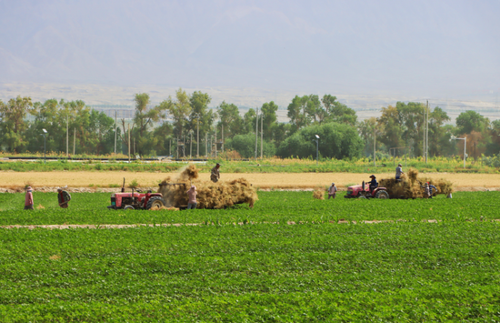 6月13日,笔者来到二十九团博古其镇八连和十三连,在孜然套种棉花示范田里,职工们正抢抓农时采收孜然。“我种了83亩棉花套种孜然,每亩预计产量85公斤,孜然一公斤能卖 18元左右,孜然采收完预计能收入12万元,纯收入9万左右。”二十九团博古其镇八连职工范家荣说。