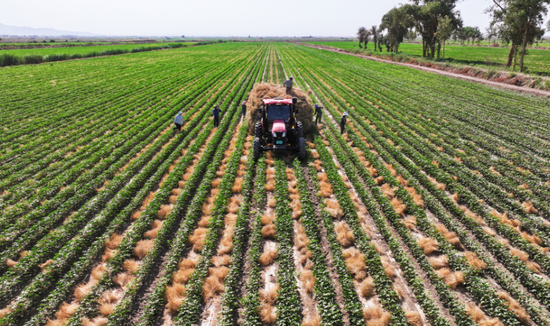 该团镇除了“孜然 棉花”,还有“孜然 玉米”“小麦 棉花”,二十九团博古其镇“接茬不断档、一地多生金”的套种模式,展现了现代农业对土地潜能挖掘的不懈探索。通过作物搭配的科学“算法”,农田摇身一变成为多元化生产的“聚宝盆”,为农业增效、职工增收开辟新路径。笔者查阅有关资料显示,通过科学轮作,土地单位面积产出大幅提升,实现了“一地双收”。值得一提的是,这种创新种植方法作为高效耕地轮作的重要组成部分,核心依托“覆膜滴灌”技术,既保障了棉花、粮食安全,又推动了农业经济可持续发展。