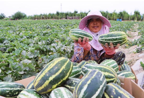 中新网兵团新闻6月17日电(刘万乐)六月的博古其大地绿意葱茏、甜瓜飘香。连日来,新疆生产建设兵团第二师铁门关市二十九团博古其镇田间地头瓜香四溢,一派丰收景象。