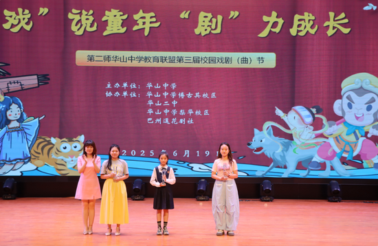 中新网兵团新闻6月20日电(刘万乐)6月19日,新疆生产建设兵团第二师华山教育联盟核心校区第三届校园戏剧(曲)节在博古其中学精彩上演。此次活动由第二师铁门关市教育局主办、华山中学承办,博古其中学、华山二中等多校协同参与,以“‘戏’说童年 ‘剧’力成长”为主题,为师生打造了一场文化盛宴。