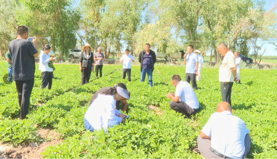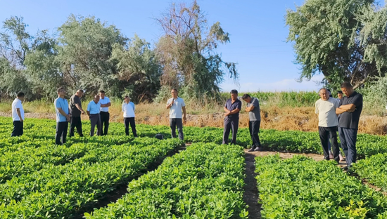 交流活动中,参会人员一行沿既定路线深入各连队花生种植片区,先后走进10连、9连、4连、5连、7连、13连、14连、16连等观摩点,实地查看不同地块花生长势,在田间地头交流种植经验、破解生产难题。