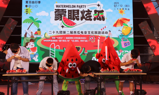 中新网新疆新闻7月14日电(刘万乐)7月12日,新疆生产建设兵团第二师二十九团第二届西瓜电音文化旅游活动在该团四连“甜蜜”开幕,现场热闹非凡,丰富多彩的活动吸引了线上线下疆内外超万名游客和周边群众前来体验,游玩享乐,进一步提升了二十九团西瓜特色农业品牌的知名度和美誉度。