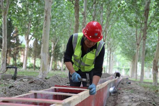 连日来,阿拉尔市幸福路改造提升现场一片忙碌,工人们正在进行围墙基础施工,为后续工程推进筑牢根基。
