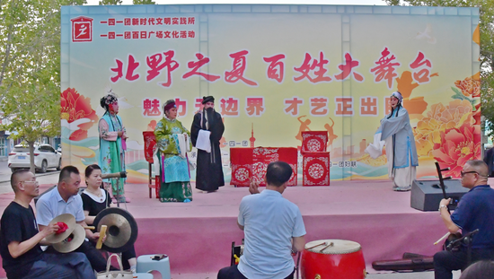 中新网兵团新闻8月16日电(张洁瑞 刘文欣)8月13日,石河子秦韵秦腔艺术团走进新疆生产建设兵团第八师一四一团步行街“百姓大舞台”,让职工群众在家门口领略到了秦腔传统戏曲艺术的独特魅力。