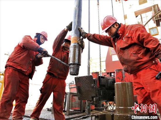 中新网乌鲁木齐2月20日电 (记者 王小军)远眺新疆塔里木盆地富满油田,沙漠腹地钻机轰鸣,油气管线交织。二月的沙漠气温低至冰点,但新疆石油工人为深地钻探,寻找新资源。