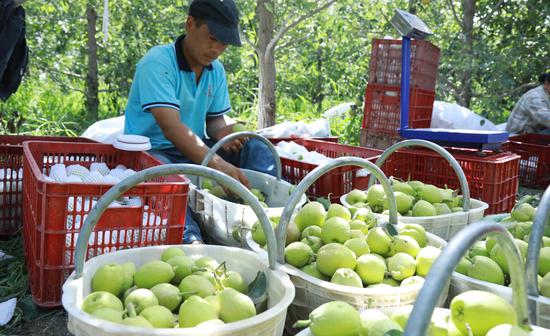 据悉,盛向宏家今年精心栽培了15亩地的香梨,每亩地的产量接近3吨,相比去年实现了约10%的增产。“今年的市场行情不太好,价格比往年低一些,品相最好的一级果收购价是4元一公斤,幸运的是我平时管理得当,我家的香梨品相好,产量也高,今年还是能有一笔可观的收入。”盛向宏笑着说。