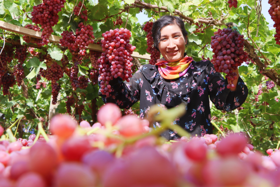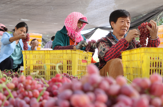 初秋时节,硕果盈枝。这几天,新疆铁门关市的2.7万亩葡萄园迎来丰收季,在阳光的照耀下,晶莹剔透。农户们忙着采摘、分拣、装箱动作娴熟,准备发往上海、广东等地,脸上的笑容与满园硕果相映,勾勒出一幅丰收的喜人画卷。(刘万乐)