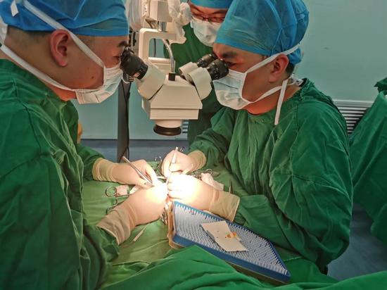 “科室医生跟着我们做了这么多台手术,积攒了很多经验,这次指导他们实施手术中的吻合流程,做得很不错,这样一来,我们也算是初步达到将技术留在这里的目的了。”章峰火表示,经过一个多月的动物血管吻合实验和临床带教学习,阿拉尔医院骨科目前已有2位医生可以开展简单的血管、神经吻合技术。