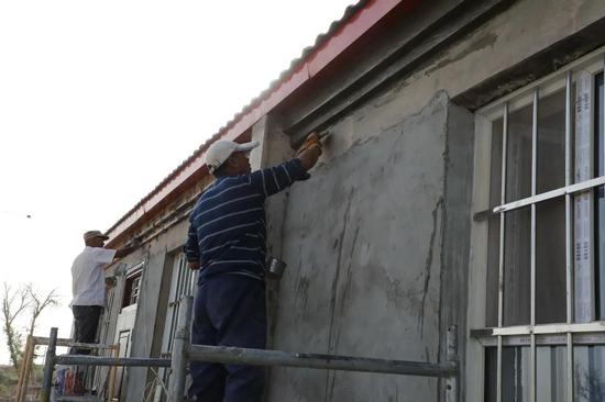 中新网兵团新闻9月27日电(陈健生 赵婧 赵丹丹)走进新疆生产建设兵团第一师二团四连职工住房施工现场,工人们正在对房屋墙体进行加固,安装保温板……