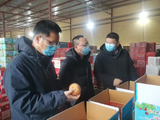 2021年“台阿线上年货节”前夕,周海明(左)在一师九团的一家合作社检查备货情况(资料图片)