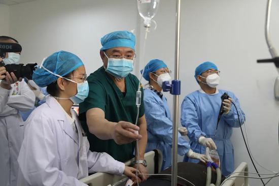 “这类手术的麻醉对于医生的技术水平要求很高,既要保证患者处于镇静无痛的麻醉状态,同时还要保持术中患者自主呼吸,通过刺激反应,将异物以吸引或其它方式排出体外,避免减少患者肺部感染风险。”宋振东说。