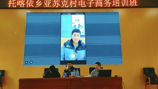 中新网兵团新闻12月9日电(曹格旭)近日,经新疆生产建设兵团开放大学驻第一师阿拉尔市托喀依乡亚苏克村“访惠聚”工作队联系,兵团开放大学继续教育学院为该村有电商基础知识且有兴趣从事电商行业的年轻人开展了为期三天的电商培训课程。台州援疆教师万鹏威为学员授课。
