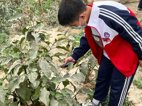活动中,课题主持人孙元明给学生们分配了任务,随后学生们在老师们的指导下进行除草、翻地、采摘等劳动实践活动。虽然秋日的阳光依旧灼人,可学生们完全不在意,在欢声笑语中挥洒汗水,完成了实践任务。