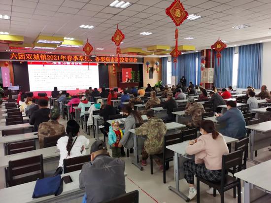 针对这种情况,台州援疆指挥部投入援疆资金对师市范围内香梨枝枯病统防统治且达到防治效果的按每亩50元进行补贴,并邀请浙江大学植物病理学博士、教授楼兵干现场传授果农病虫害防控知识,为果农增产丰收保驾护航。目前,援疆资金共预防枝枯病面积17962.68亩,受益农户502户。