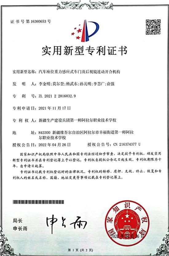 第一师阿拉尔职业技术学校青年教师莫尔登撰写的论文《智慧互动 精准教学——智慧课堂“5j”教学模式的探索与实践》获得2022年兵团职业院校论文评比活动中职组的一等奖;第一师高级中学101学生在十五届全中学生创新作文大赛中斩获奖项;台州援疆教师李金明、俞强、李慧广带领第一师第一师阿拉尔职业技术学校青年教师莫尔登、孙元明、杨武东发明的实用新型专利《汽车座位重力感应式车门及后视镜连动开合机构的研究》获国家级实用型专利……台州援疆教师们入疆以来,喜讯连连捷报传,这不仅是传帮带成绩的有力印证,也是他们开展“以赛促练”的生动实践。