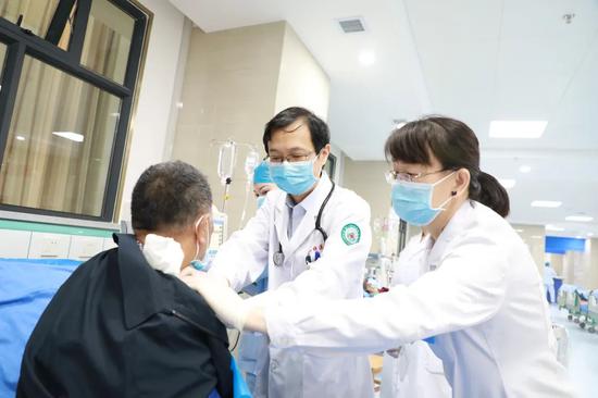 “患者大汗淋漓、持续咳嗽,用听诊器能听到两肺布满干湿啰音,是典型的急性心力衰竭表现,立即调整血液超滤量,加大脱水量,给予面罩吸氧,地塞米松、镇静等抢救……”6月8日一早,新疆生产建设兵团第一师医院肾内科援疆专家张晓辉副主任正在查房时,一位血液透析患者出现不良情况,立即开展相关抢救。