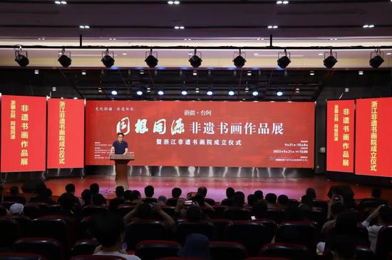 9月21日,浙疆台阿·同根同源非遗书画作品展在杭州正式开幕。台州市援疆指挥部党委委员郑波深有感触地说,非物质文化遗产是中华民族文化的积淀,承载着中华民族的基因和血脉,坚持以书画为媒介,深耕深绘中华文化,传承传播非遗之美,是台州援疆文化润疆、增进认同的创新举措。