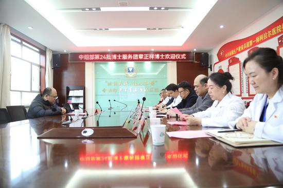 1月17日,中组部第24批援疆博士服务团成员章正祥来到浙大邵逸夫阿拉尔医院,正式开启援疆工作新征程,院领导、相关科室负责人参加欢迎仪式,医院党委委员、副院长秦旭红主持仪式。