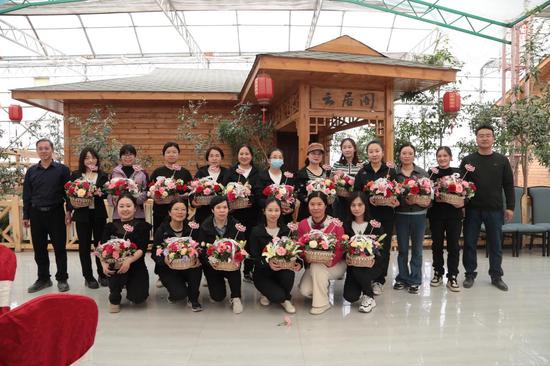 台州市援疆指挥部为所有女性援疆干部人才送上鲜花。