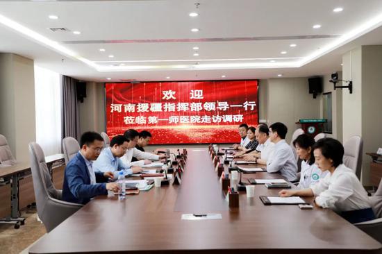 6月5日下午,河南援疆前指总指挥、哈密市委副书记卢希望一行4人莅临第一师医院,就专科发展、就医环境、医院管理、“组团式”援疆工作进行走访调研,第一师医院党委书记管永虎,党委副书记、院长陈大进及部分院领导参加调研。