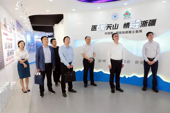 卢希望一行首先了解了医院门诊综合楼建设及布局情况,随后参观了急诊科,了解了急诊科的基本情况和救治能力,听取了生殖医学中心发展与建设情况,以及目前治疗病例情况,并对病理科、口腔科先进设备、布局、流程进行了参观调研,深入了解了介入诊疗中心业务开展、学科建设。通过参观援友之家(援疆馆),卢希望对第一师医院在浙江大学六家附属医院的帮扶下,在诊疗技术、精细化管理、科研教学和学科建设等方面取得的成果给予了充分肯定。