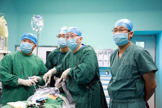 泌尿外科主任马大东说:“膀胱癌是泌尿系统常见的恶性肿瘤之一,而腹腔镜下膀胱根治术是泌尿外科最复杂的手术之一,手术难度较大,步骤繁琐,耗时长,非常考验医生手术技巧和临床水平。”