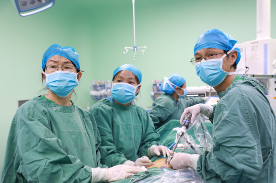 之后,张晓辉为患者实施了“低位两孔法腹腔镜下腹膜透析导管重新置管术”,该技术为阿克苏地区首例。