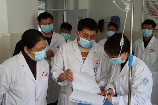 台州“以市包院”第三批援疆专家深入临床科室,为急救患者制定诊疗方案。黄磊 摄