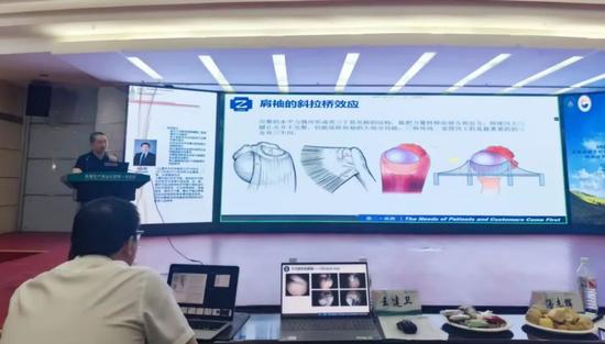 在病房内,朱苏南教授和授课专家钟雨婷教授(来自浙江大学医学院附属第二医院)与科室医护人员,一同查看了3例肩袖撕裂患者的术后恢复情况。“这位患者肩袖撕裂范围超过5厘米,属于巨大撕裂,术后三天,正是功能恢复的关键期。”满时峰医生介绍着病情,朱苏南已俯身手把手调整患者的手臂角度。“来,跟着我做,想象手里握着个杯子,慢慢抬到耳朵边……对,就是这样,感觉到肌肉发力了吗?”他一边示范,一边用手在患者肩胛骨周围轻轻按压,“这里的肌肉力量还不够,我们得制定新的训练计划,每天增加三组抗阻训练……”耐心细致的指导让患者和家属倍感安心。