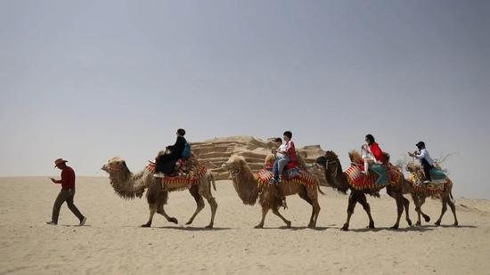 眼下正值新疆旅游的黄金季节,在塔克拉玛干沙漠之门景区,来自全国各地的游客在这里欣赏大漠风光,体验沙漠越野车,享受悠闲自在的骆驼骑行。