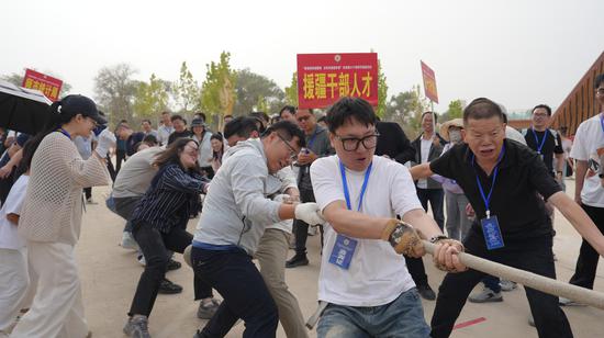 “加油!加油!”塔河源畔的呐喊声此起彼伏,16支拔河队伍分两区列阵,每队8人(5男3女)的阵容里,既有台州援疆干部人才,也有受援单位的“精兵强将”。用“小组循环赛 总决赛”的三局两胜制,较量出获胜队伍。