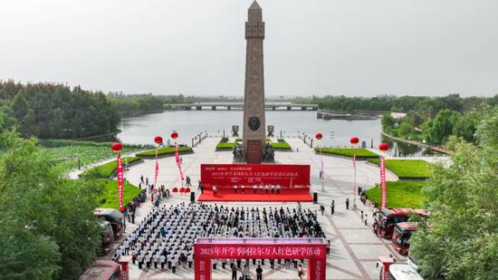 9月16日,2025年开学季阿拉尔万人红色研学活动在阿拉尔市三五九旅屯垦纪念碑广场正式启动。本次活动为期10天,来自塔里木大学、塔里木职业技术学院、塔里木理工学院的14000余名新生,将走进阿拉尔的红色地标,在沉浸式体验中感悟军垦初心,让青春之光与军垦明珠互相辉映,共赴前程似锦、共享满城荣光。